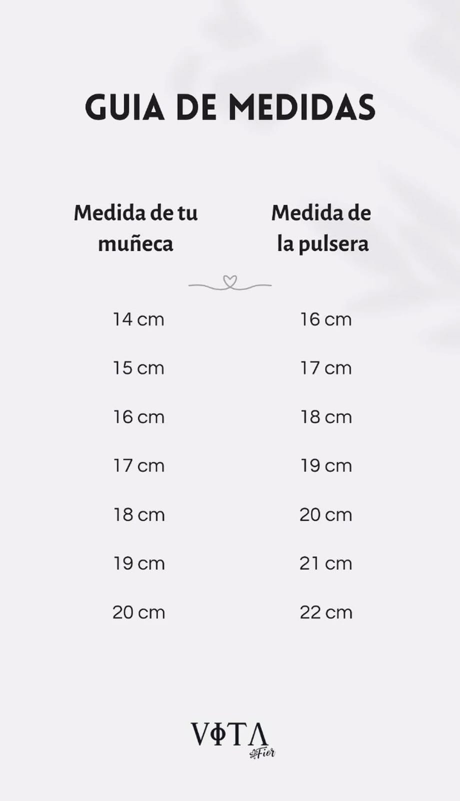 Se debe tener en cuenta que se debe dejar un espacio de aproximadamente 1,5 cm de espacio entre muñeca y pulsera para colocarle los charms y no quede tan ajustada.